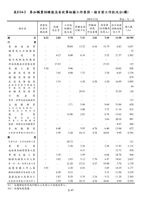 表E14-2 參加職業訓練後沒有從事相關工作原因-按目前工作狀況分(續)