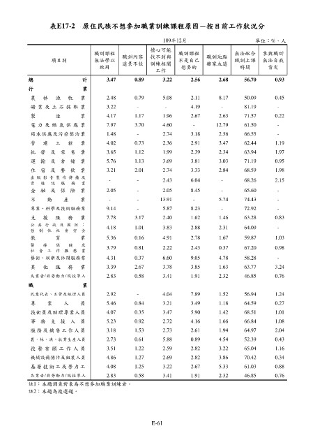 表E17-2 原住民族不想參加職業訓練課程原因-按目前工作狀況分