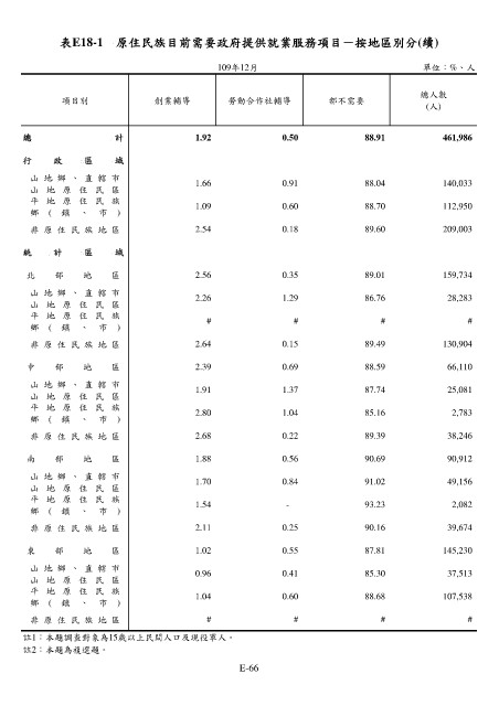 表E18-1 原住民族目前需要政府提供就業服務項目-按地區別分(續)