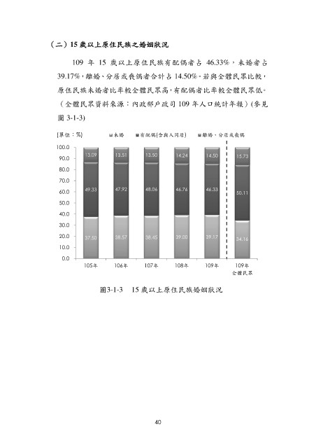 圖3-1-3 15 歲以上原住民族婚姻狀況