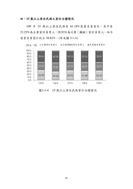 109 年 15 歲以上原住民族有 61.18%需要負責家計,其中有