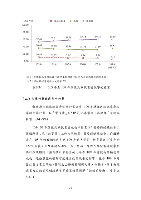 3.58%成長至 109 年的 5.20%。另一方面,原住民族就業者從事公