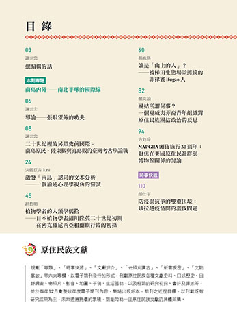掌故」等六大專欄,以電子期刊發行的形式,刊載原住民族各種文獻史料、口述歷史、田
