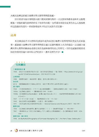 事。感謝國立臺灣大學人類學博物館在藏品記錄和觀察上大力的協助,以及國立臺