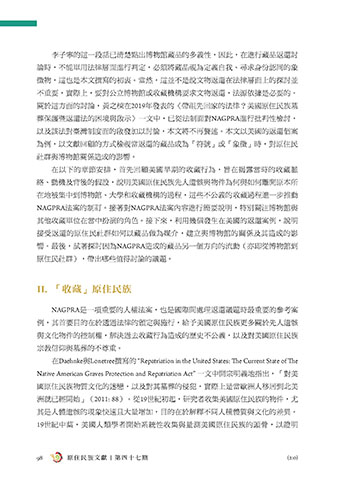 響。最後,試著探討因為NAGPRA造成的藏品另一個方向的流動(亦即從博物館到