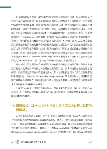 主體性,以及他們如何理解與挪用NAGPRA設定的規則,突顯藏品的象徵意涵,建