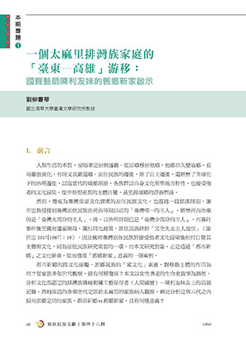 主體與文化,則為原住民族研究重要的一環。而本文研究對象,正是通過「都市新