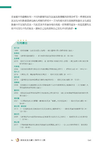2006 〈從家庭因素探究原住民父母教育觀及學業成就之研究〉。《學校行政》41:199-214。