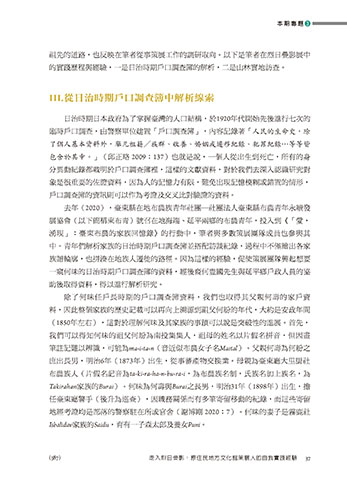 的實踐歷程與經驗,一是日治時期戶口調查簿的解析,二是山林實地訪查。