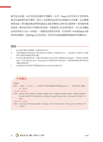 2021 〈誰是「山上的人」?―被梯田生態場景纏繞的菲律賓Ifugao人〉。《原住民族文獻》