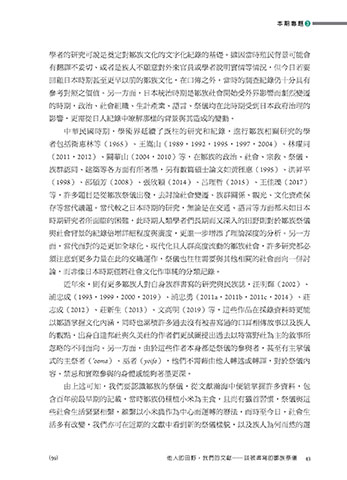 論,而非像日本時期僅將社會文化作單純的分類記錄。