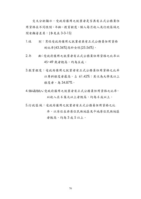 1.性 別:男性受政府僱用之就業者具有正式公務員任用資格