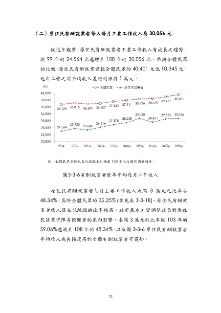(二)原住民有酬就業者每人每月主要工作收入為 30,056 元