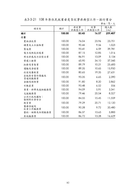 表3-3-21 108 年原住民就業者是否從事非典型工作-按行業分