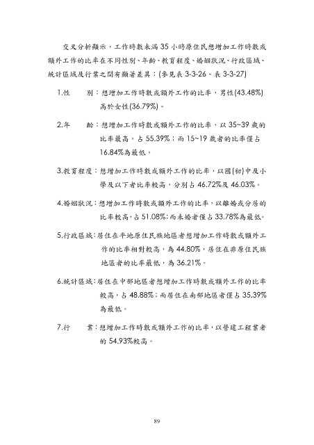 交叉分析顯示,工作時數未滿 35 小時原住民想增加工作時數或