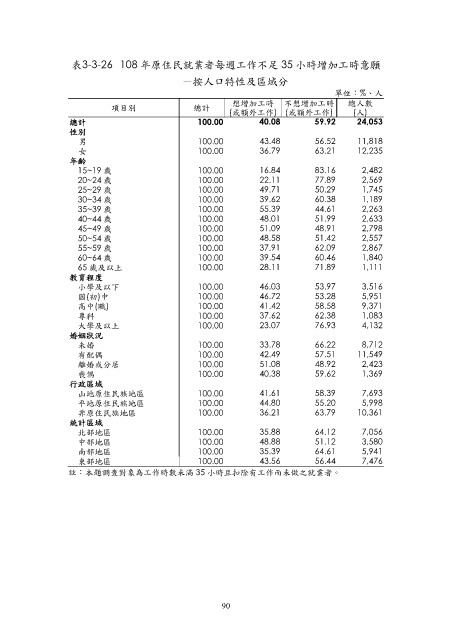表3-3-26 108 年原住民就業者每週工作不足 35 小時增加工時意願