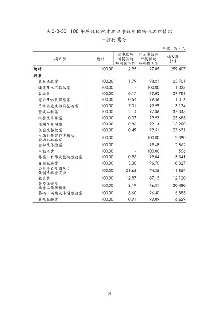 表3-3-30 108 年原住民就業者從事政府臨時性工作情形