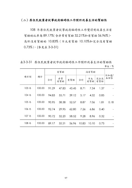 108 年原住民就業者從事政府臨時性工作覺得對改善生活有