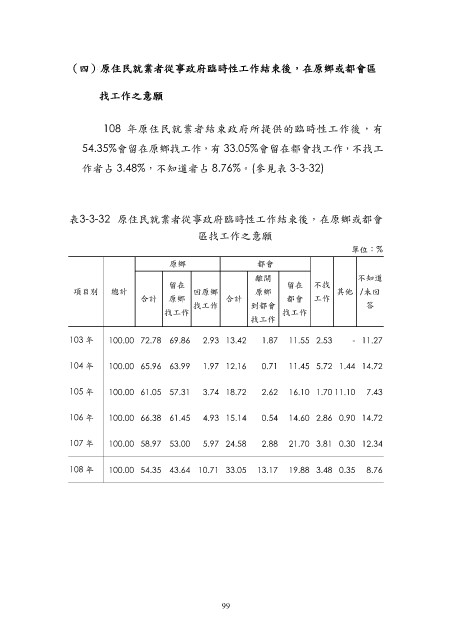 表3-3-32 原住民就業者從事政府臨時性工作結束後,在原鄉或都會