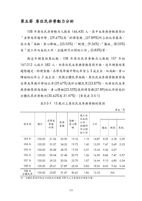 全體民眾非勞動力(30.62%及 31.47%)。(參見表 3-5-1)