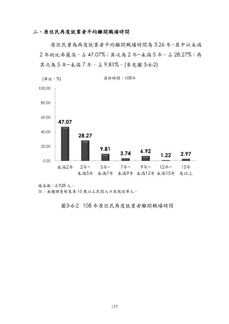 原住民曾為再度就業者平均離開職場時間為 3.26 年,其中以未滿