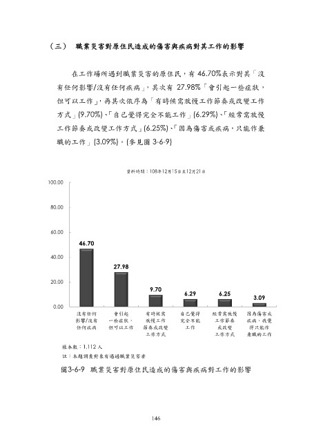 圖3-6-9 職業災害對原住民造成的傷害與疾病對工作的影響