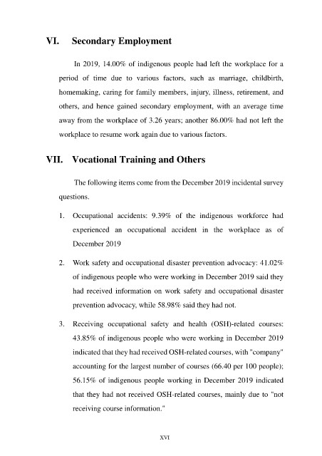 1. Occupational accidents: 9.39% of the indigenous workforce had