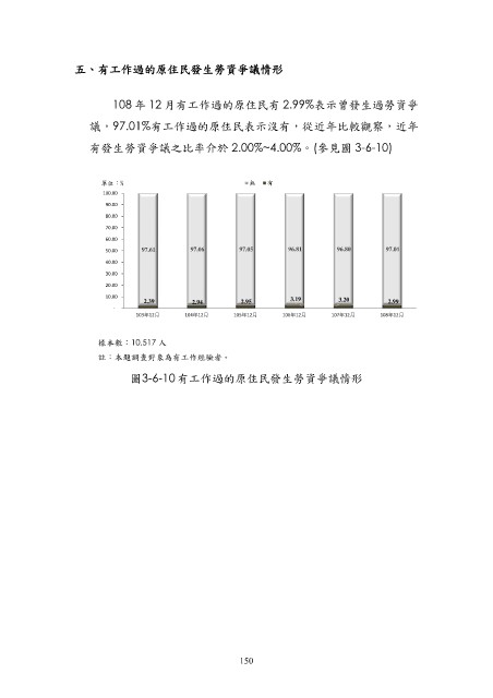 108 年 12 月有工作過的原住民有 2.99%表示曾發生過勞資爭