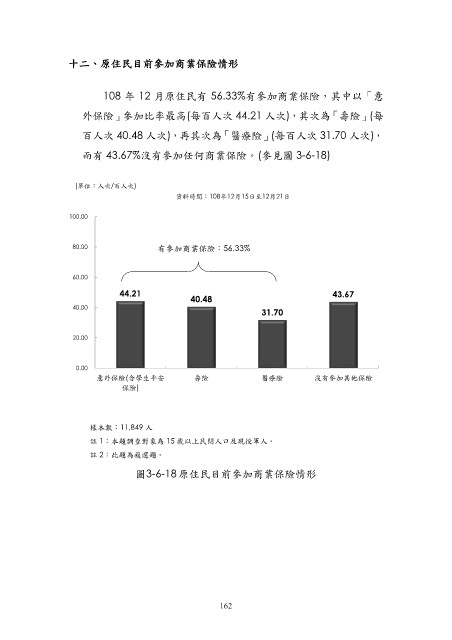 108 年 12 月原住民有 56.33%有參加商業保險,其中以「意