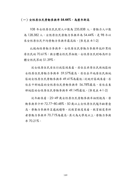 (一)女性原住民勞動參與率 54.44%,為歷年新高