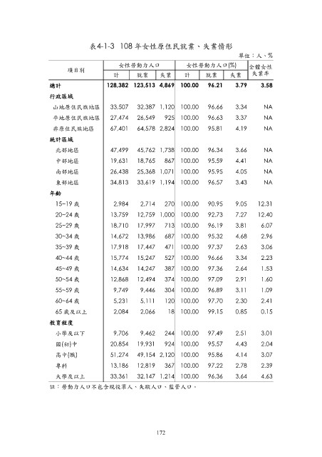 平地原住民族地區 27,474 26,549 925 100.00 96.63 3.37 NA