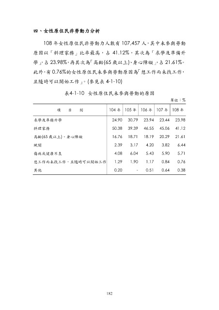 此外,有 0.76%的女性原住民未參與勞動原因為「想工作而未找工作,