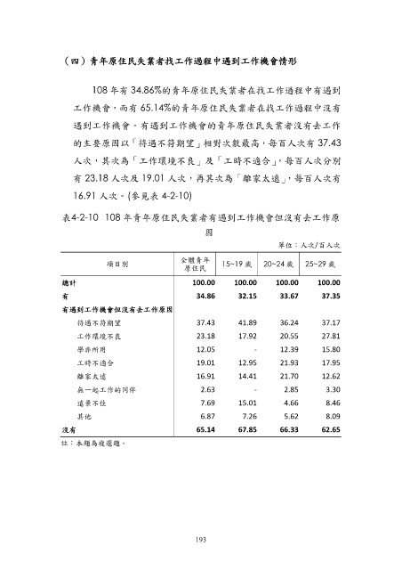 工作機會,而有 65.14%的青年原住民失業者在找工作過程中沒有