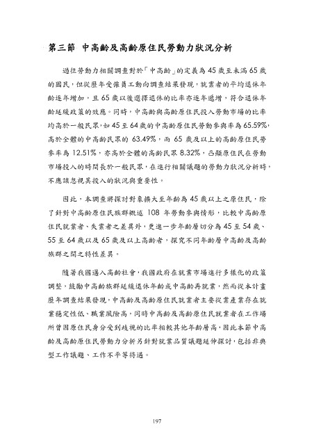 齡延緩政策的效應。同時,中高齡與高齡原住民投入勞動市場的比率