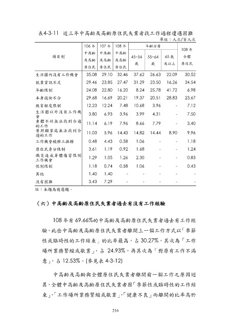 表4-3-11 近三年中高齡及高齡原住民失業者找工作過程遭遇困難