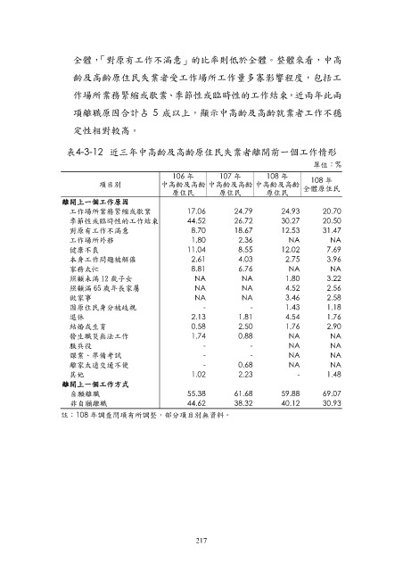 表4-3-12 近三年中高齡及高齡原住民失業者離開前一個工作情形