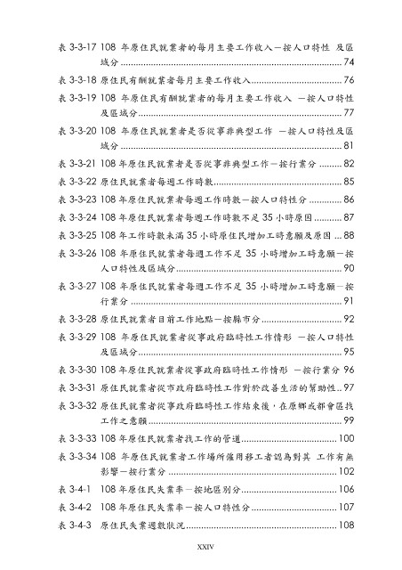 表 3-4-2 108 年原住民失業率-按人口特性分 .................................. 107