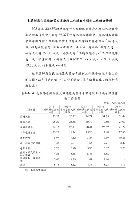 表4-4-14 近五年原鄉原住民族地區失業者求有遇到工作機會但沒有