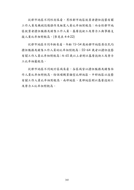 工作人員及機械設備操作及組裝人員比率相對較高;而女性都市地