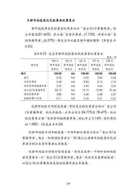 業僱用者」為主。除該項從業身分,50 歲以上者都市地區原住民從