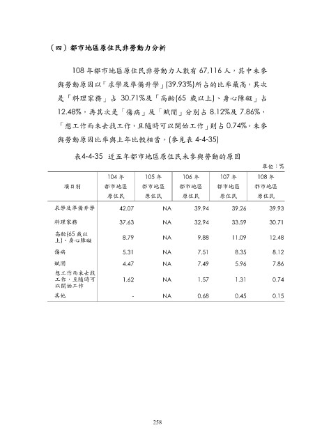 表4-4-35 近五年都市地區原住民未參與勞動的原因