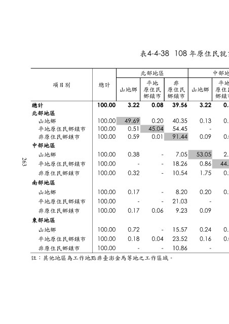 表4-4-38 108 年原住民就業者主要工作區域流動狀況