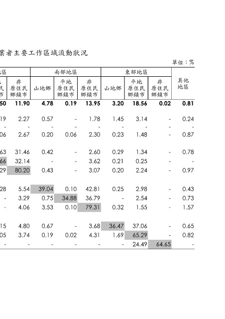 表4-4-38 108 年原住民就業者主要工作區域流動狀況