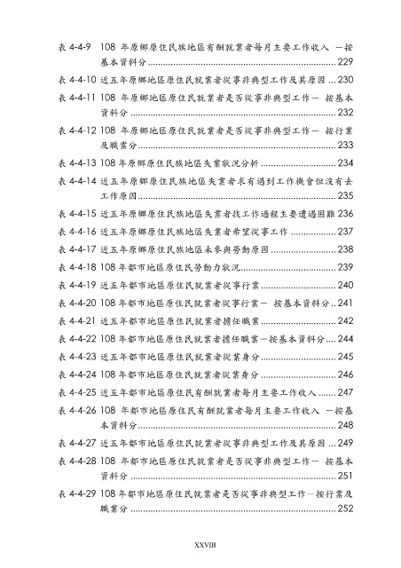 表 4-4-18 108 年都市地區原住民勞動力狀況 ...................................... 239