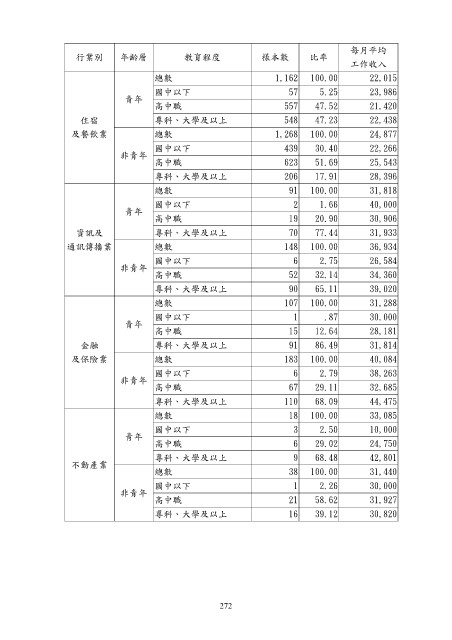 住宿 專科、大學及以上 548 47.23 22,438