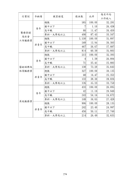 藝術娛樂及 專科、大學及以上 138 73.20 35,643