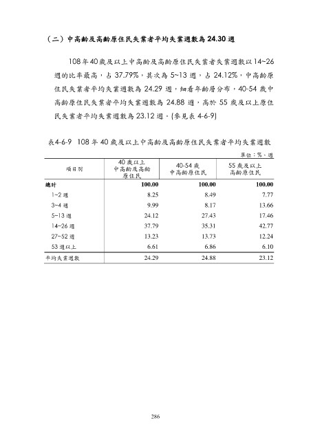 表4-6-9 108 年 40 歲及以上中高齡及高齡原住民失業者平均失業週數