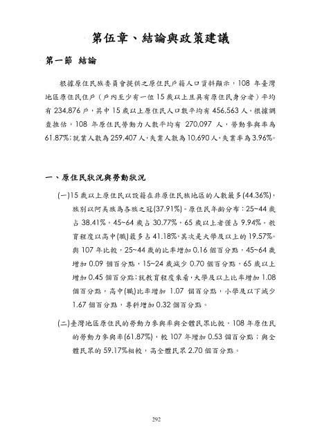 查推估,108 年原住民勞動力人數平均有 270,097 人,勞動參與率為