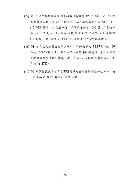 (八)108 年原住民就業者有 2.95%從事政府所提供的臨時性工作,較