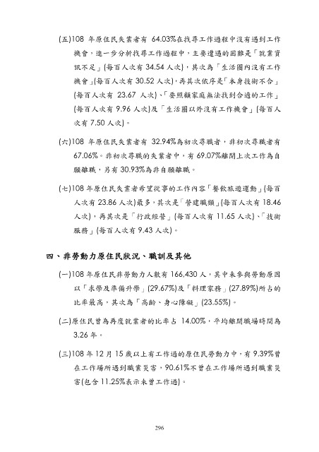 (一)108 年原住民非勞動力人數有 166,430 人,其中未參與勞動原因